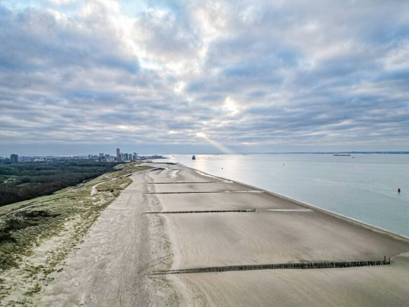 Het strand bij Westduin van hieruit heb je ook mooi zicht op de Boulevard en kun je dus helemaal wandelen tot Vlissingen of de andere kant op richting Dishoek, Zoutelande.