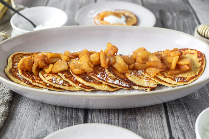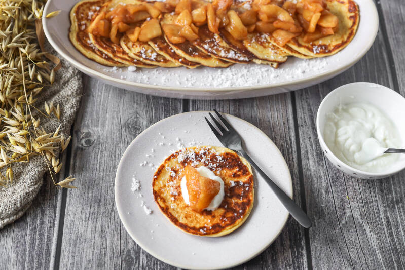Ik heb ervoor gekozen deze te serveren met gebakken appeltjes en een lepel kwark.