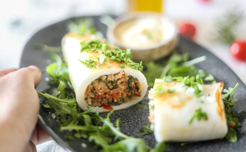 Lees snel verder hoe je deze smakelijk gevulde inktvis maakt.